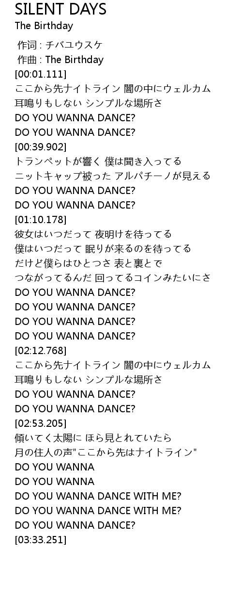 | [02:03.547] | DO YOU WANNA DANCE? |