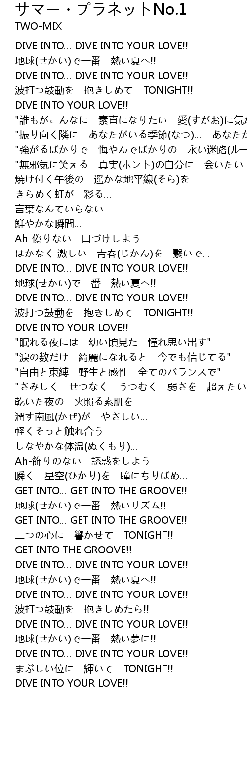 | [01:48] | 地球(せかい)で一番 熱い夏へ!! |