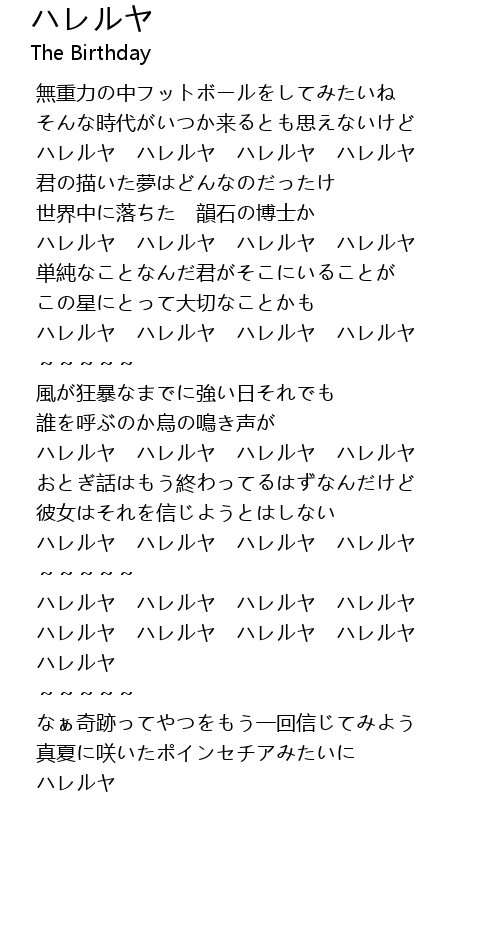 | [02:27.35] | ハレルヤ ハレルヤ ハレルヤ ハレルヤ |