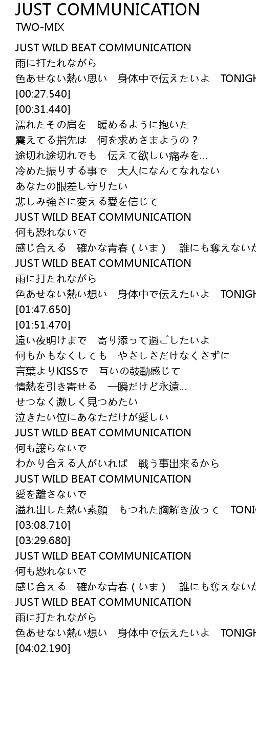 | [03:31.680] | JUST WILD BEAT COMMUNICATION |