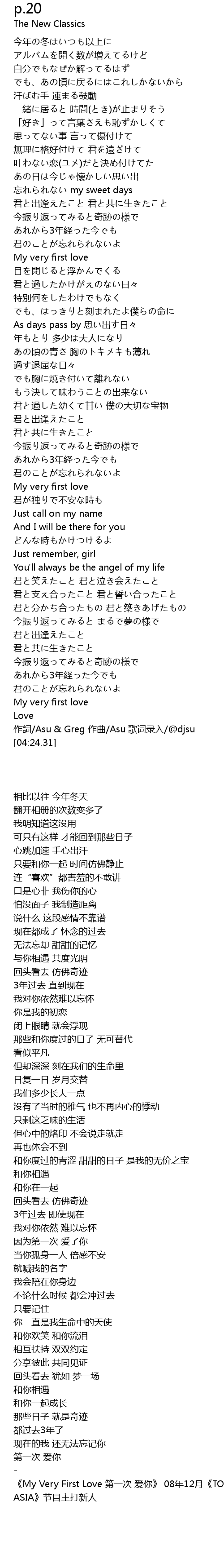 | [04:19.34] | 作詞/Asu & Greg 作曲/Asu 歌词录入/@djsu |