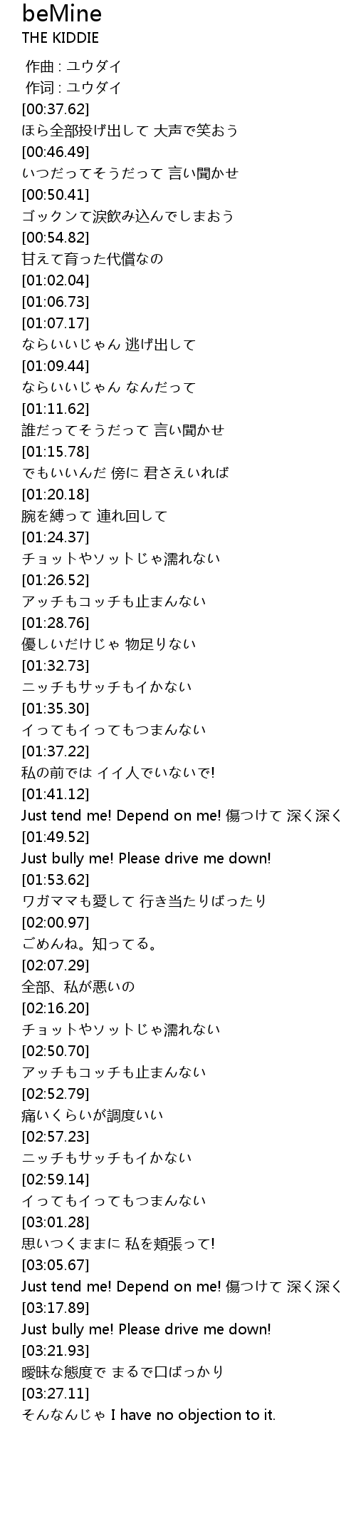 | [01:37.43] | 私の前では イイ人でいないで! |