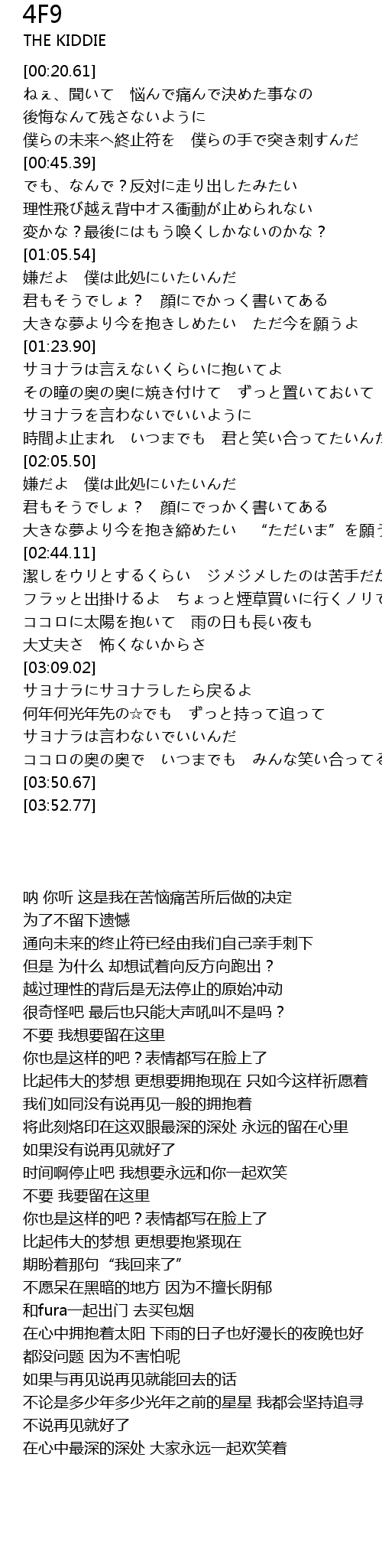 | [00:35.71] | 僕らの未来へ終止符を 僕らの手で突き刺すんだ |