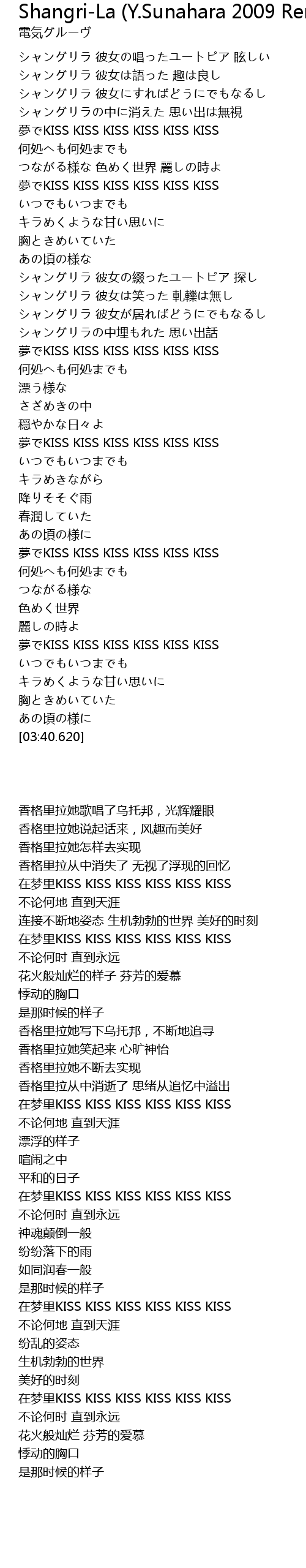 | [00:55.090] | シャングリラの中に消えた 思い出は無視 |