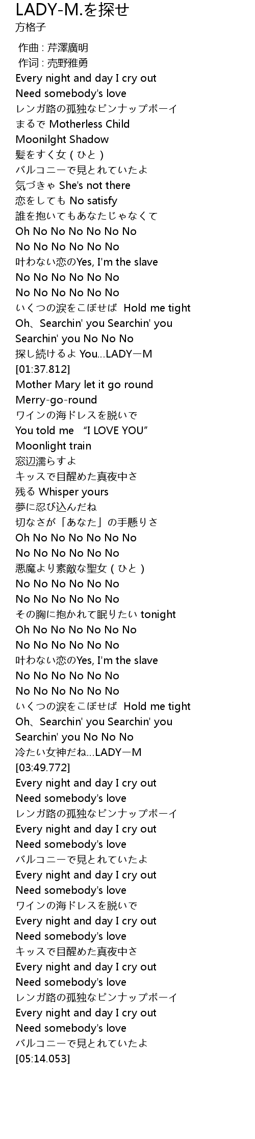 | [03:35.724] | Oh、Searchin' you Searchin' you |