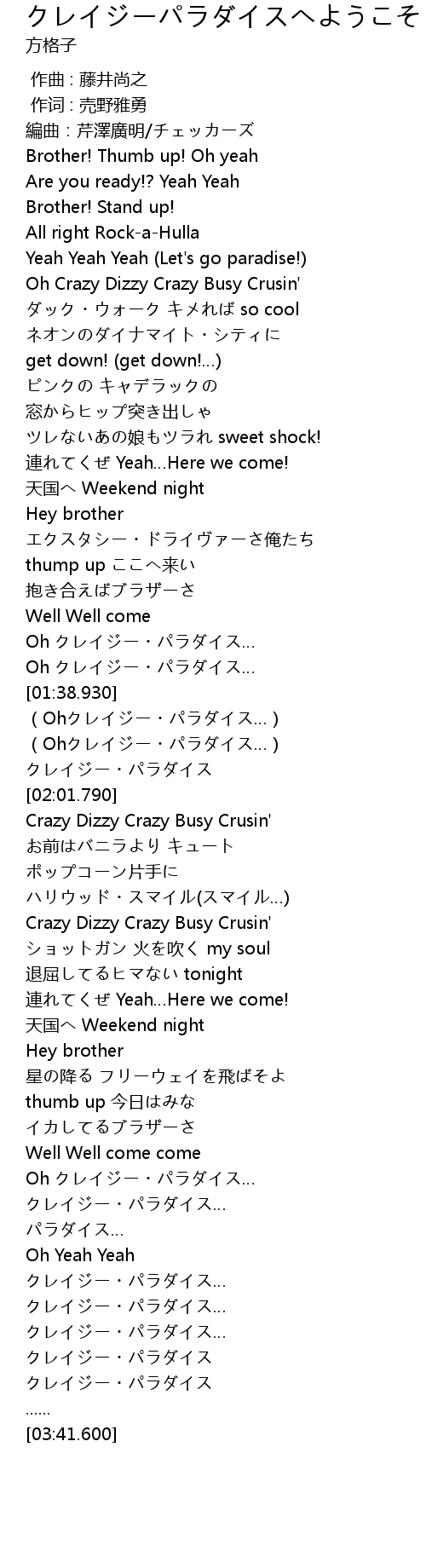 | [03:08.370] | Oh クレイジー・パラダイス… |
