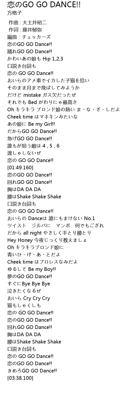 | [02:20.150] | おいらの Danceは 誰にもまけない No.1 |