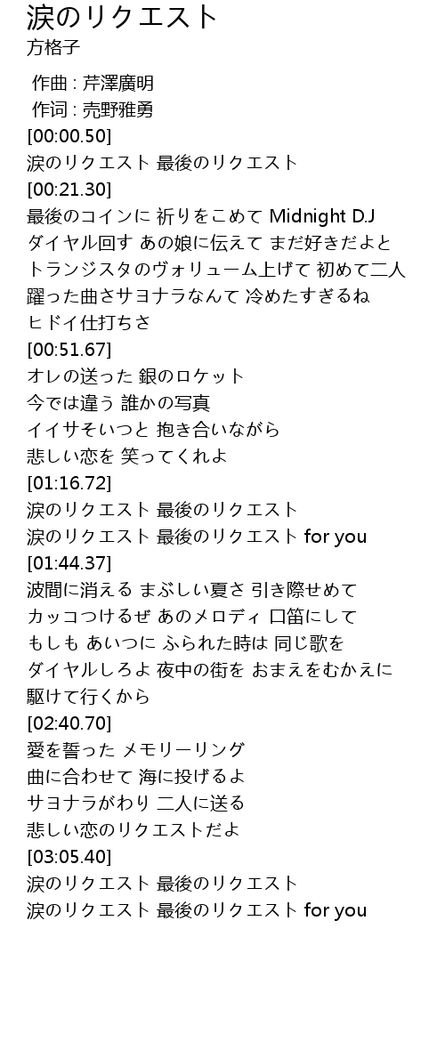 | [01:18.60] | 涙のリクエスト 最後のリクエスト |