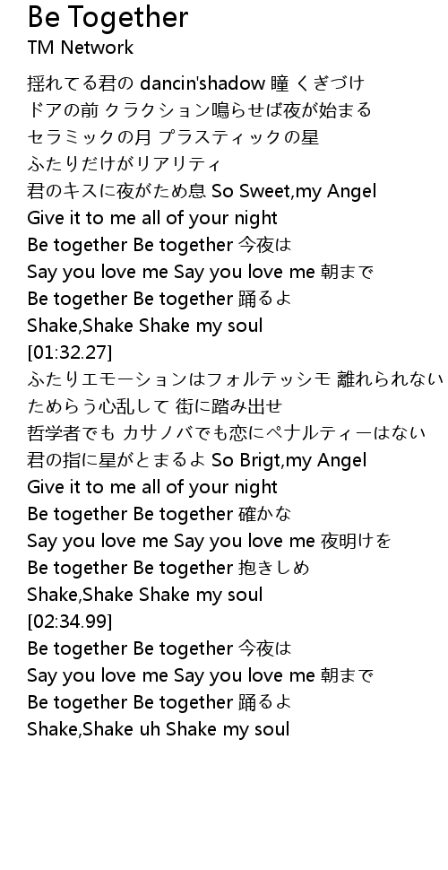 | [03:34.48] | Be together Be together yong |