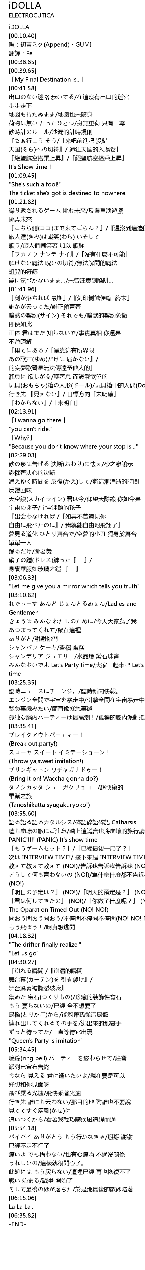 | [01:42.66] | 『刻が落ちれば 最期』/『刻印剝蝕便臨 終末』 |