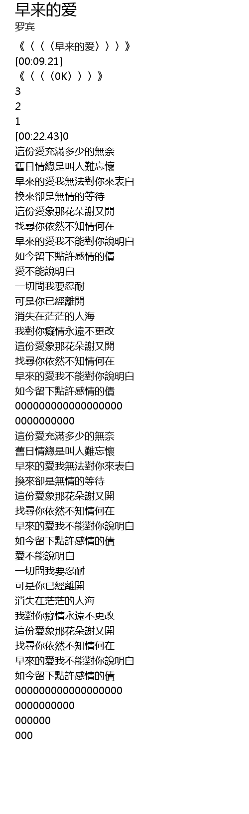 | [00:00.20] | 《〈〈〈早来的爱〉〉〉》 |
