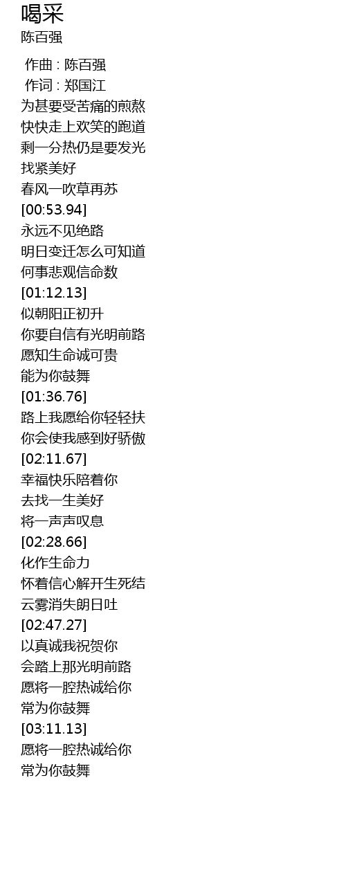 | [00:00.00] | zuò qǔ : chén bǎi qiáng |