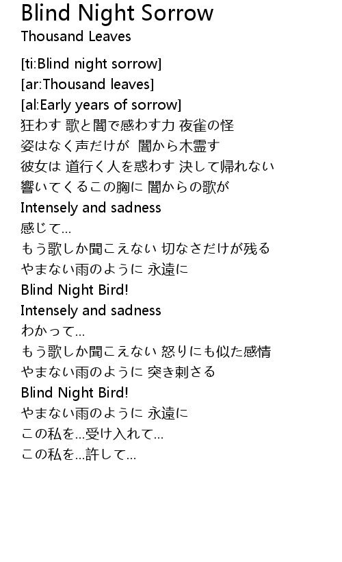 | [00:28.22] | 姿はなく声だけが 闇から木霊す |