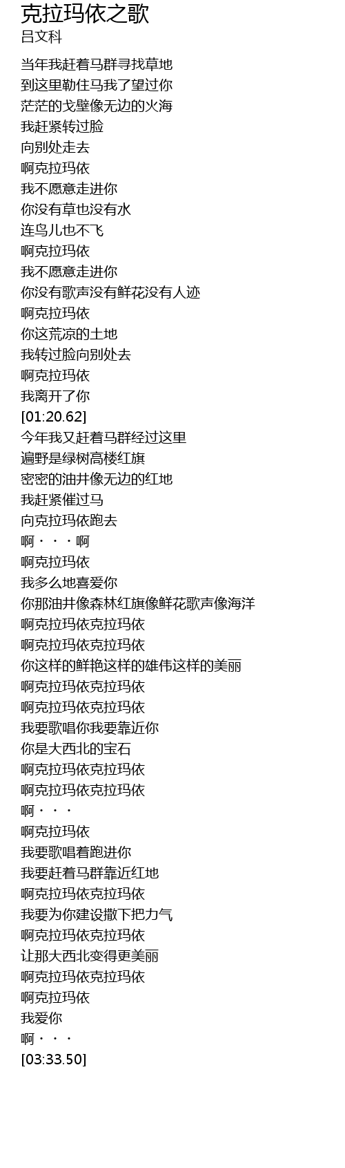 | [02:20.43] | 啊克拉玛依克拉玛依 |