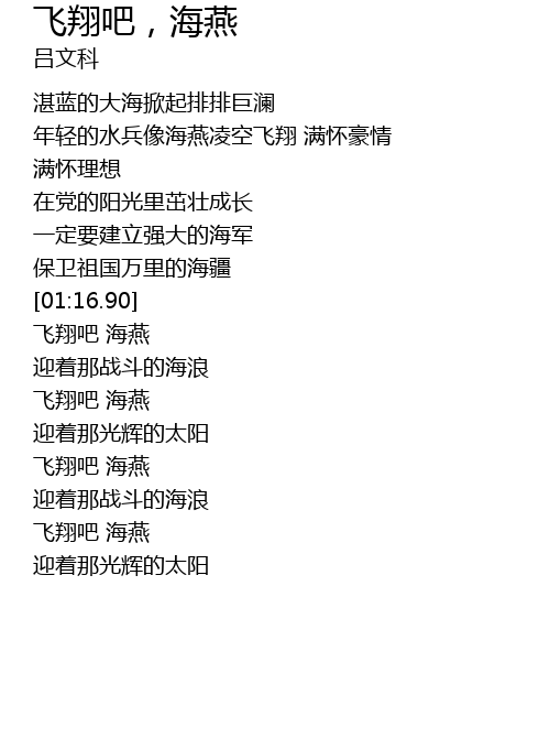 | [00:36.18] | 年轻的水兵像海燕凌空飞翔 满怀豪情 |