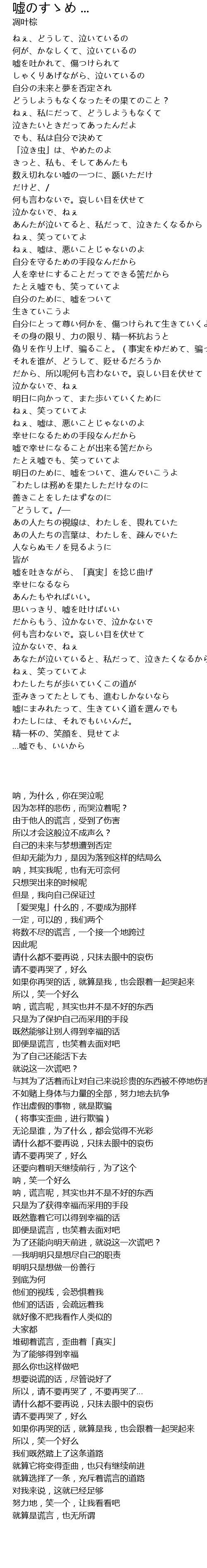 | [03:29.96] | ねぇ、嘘は、悪いことじゃないのよ |
