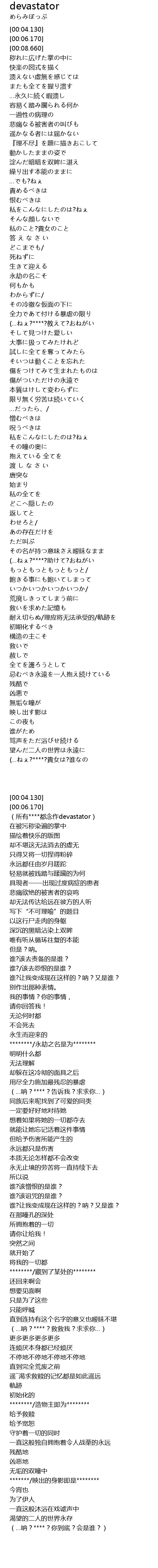 | [04:19.410] | (…ねぇ?****?助けて?おねがい |