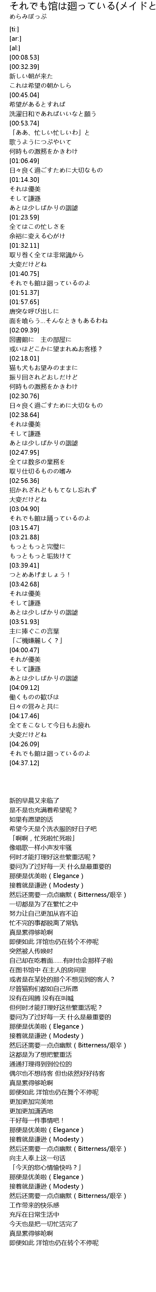 | [04:26.49] | それでも館は廻っているのよ |