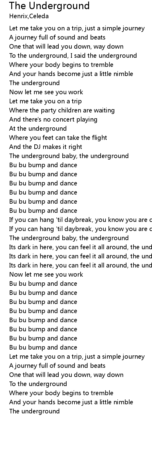 | Its dark in here, you can feel it all around, the underground | |