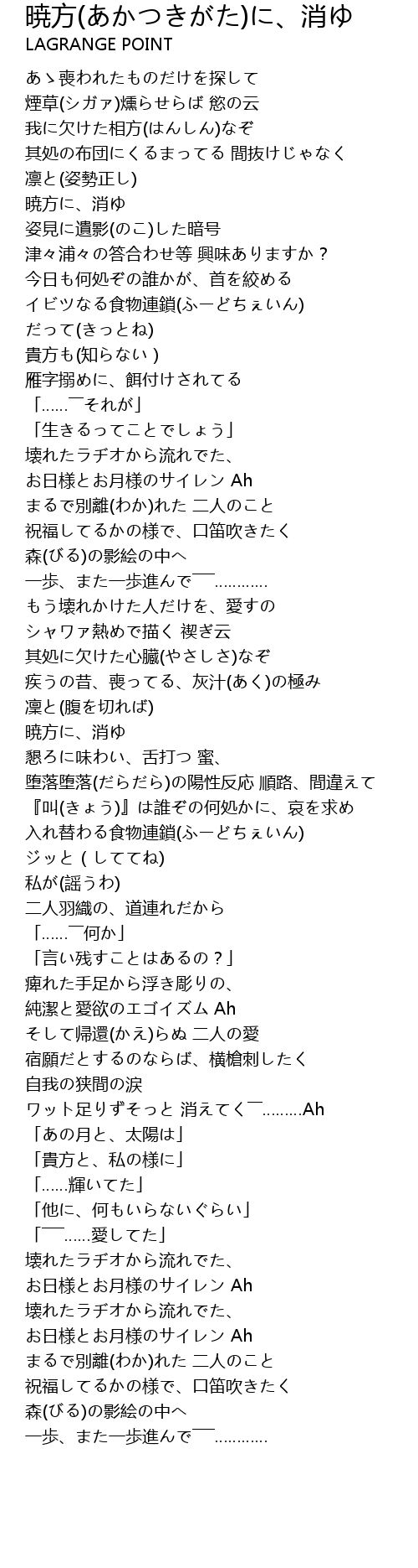 | Song | 暁方(あかつきがた)に、消ゆ |