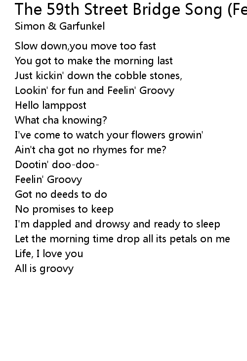 | Song | The 59th Street Bridge Song (Feelin' Groovy) |