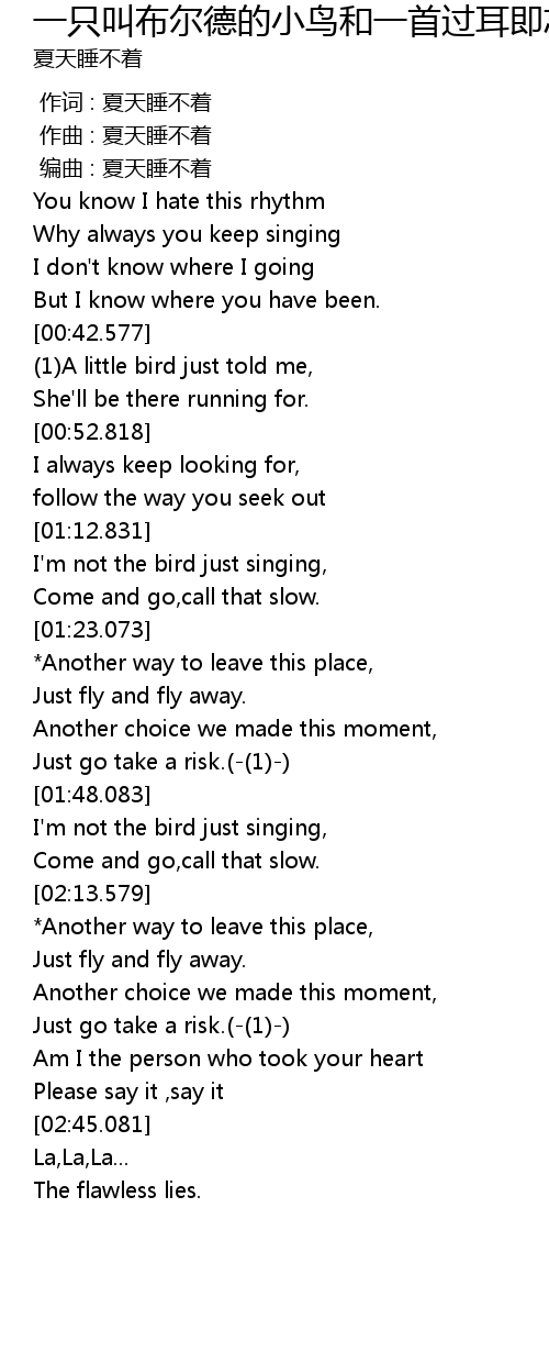 | [00:01.000] | 作曲 : 夏天睡不着 |