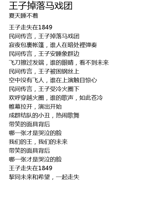 | [00:24.000] | 民间传言,王子掉落马戏团 |
