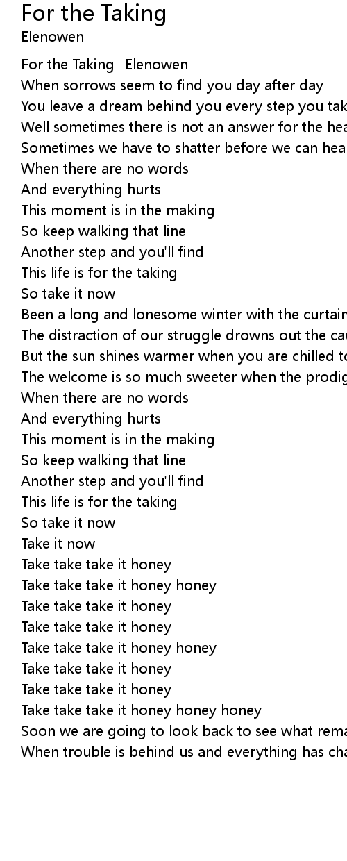 For the Taking -Elenowen |