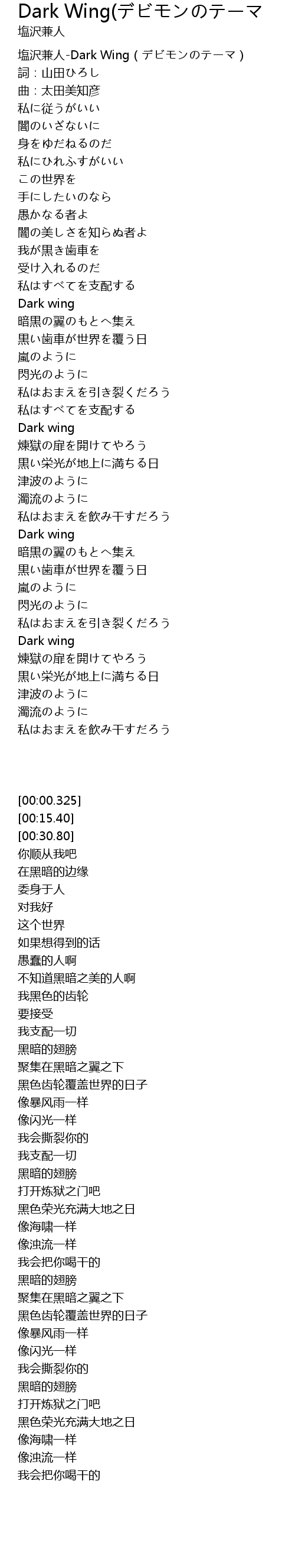 | [00:00.325] | yán zé jiān rén Dark Wing |