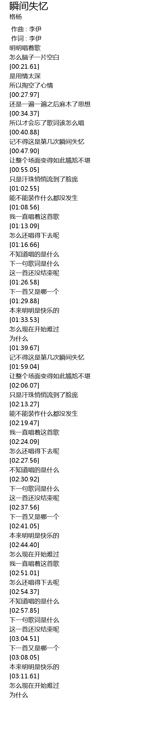 | [00:36.76] | suǒ yǐ cái huì wàng le gē cí gāi zěn me chàng |