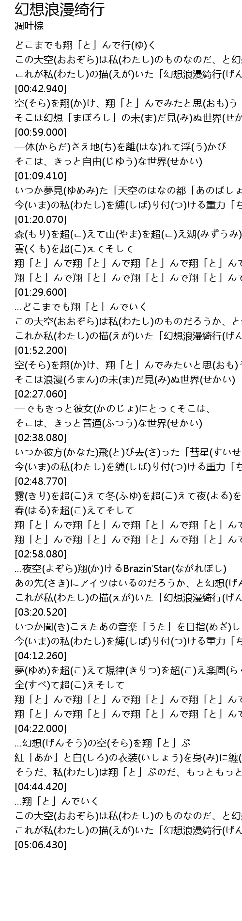 | [04:22.380] | …幻想(げんそう)の空(そら)を翔「と」ぶ |