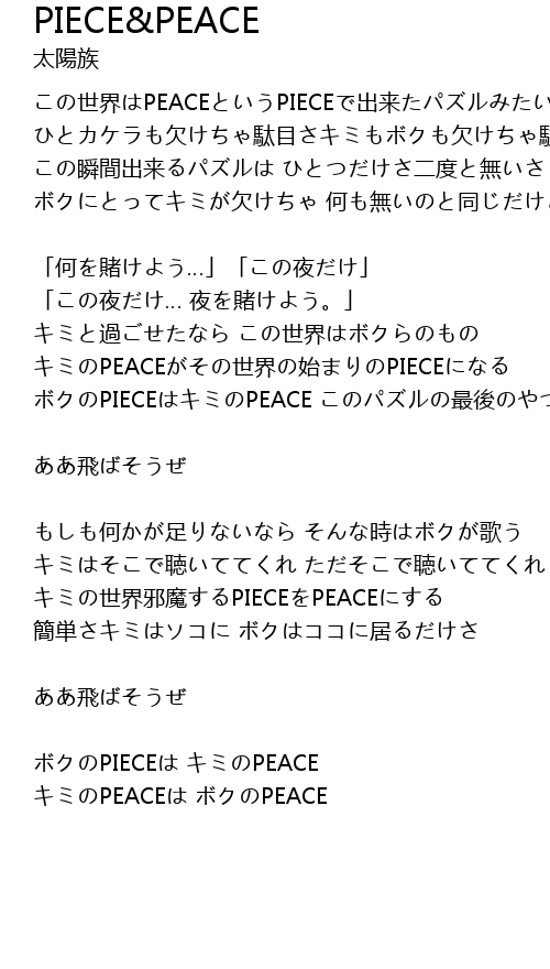 | この世界はPEACEというPIECEで出来たパズルみたい | |