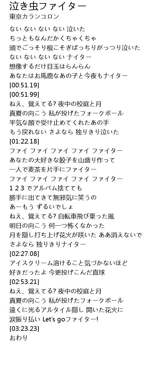 | [01:46.57] | ファイ ファイ ファイ ファイ ファイター |