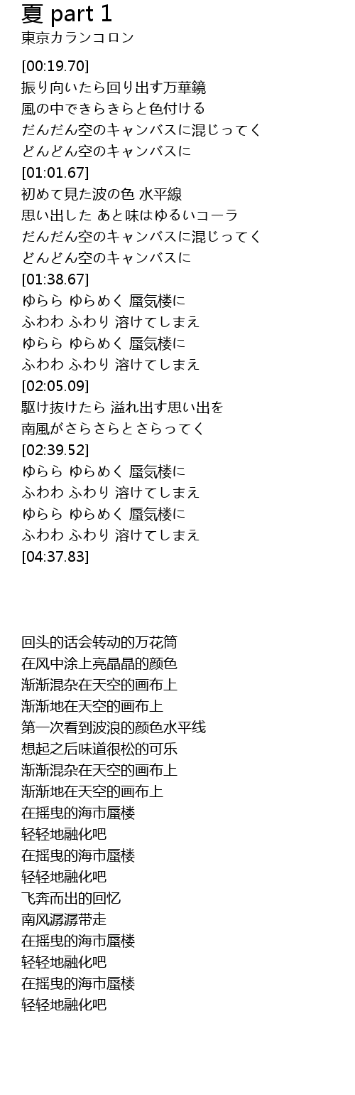 | [04:21.69] | ゆらら ゆらめく 蜃気楼に |