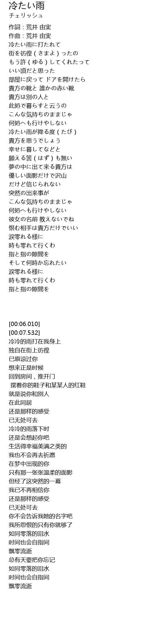 | [01:12.736] | 冷たい雨が降る度(たび) |
