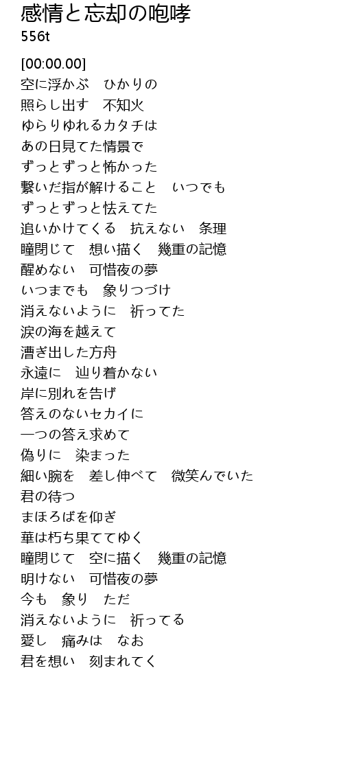 | [01:09.519] | 瞳閉じて 想い描く 幾重の記憶 |
