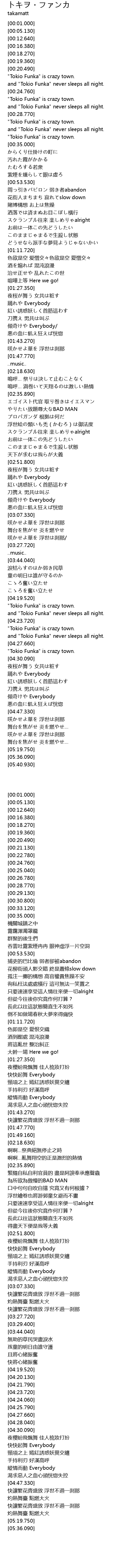 | [04:28.040] | " Tokio Funka" is crazy town. |
