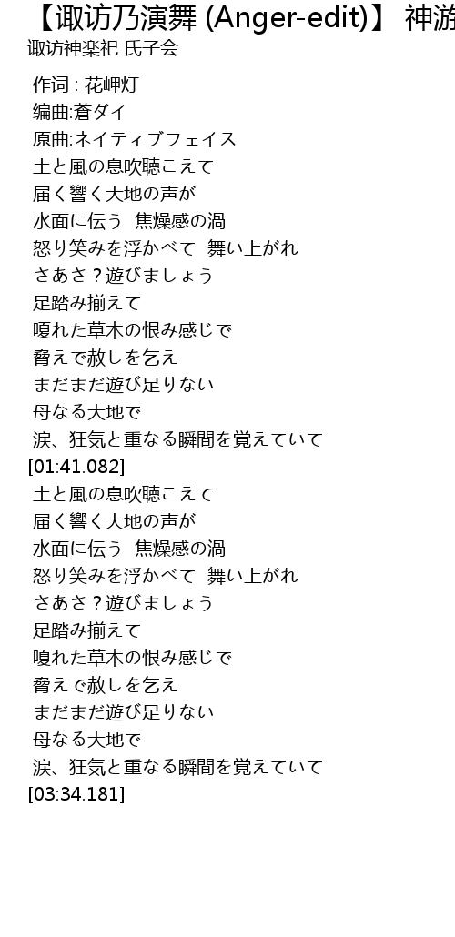| [02:36.376] | 土と風の息吹聴こえて |