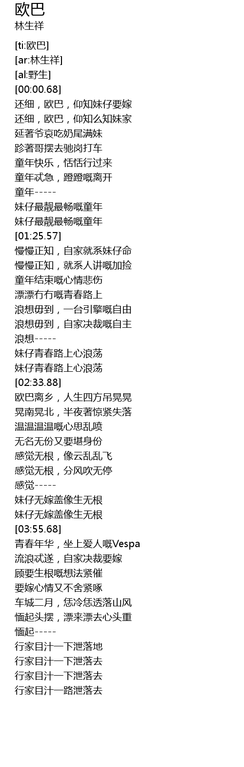 | [02:55.59] | 欧巴离乡,人生四方吊晃晃 |