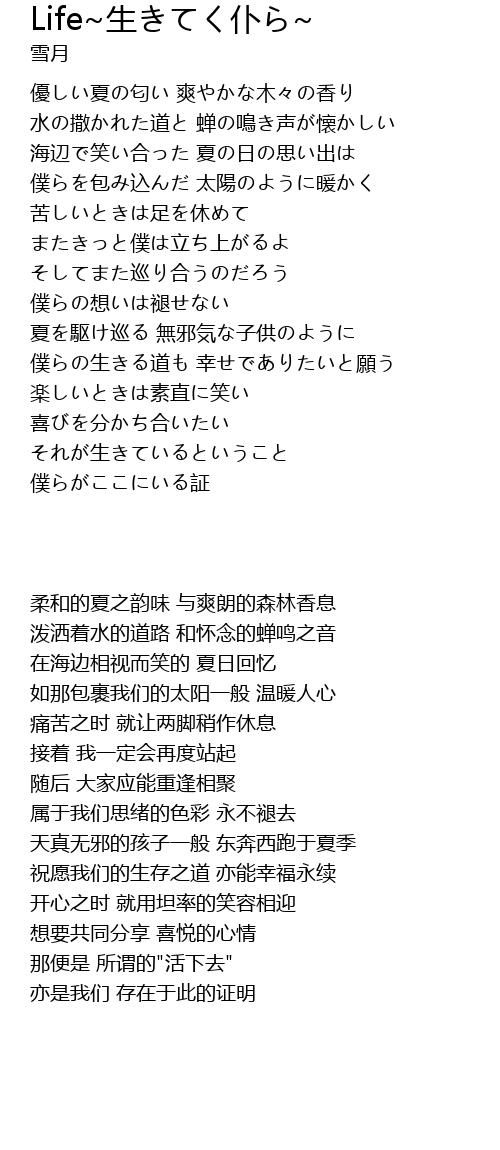 | [00:23.837] | 水の撒かれた道と 蝉の鳴き声が懐かしい |