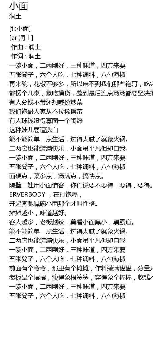 | [01:11.23] | 一碗小面,二两刚好,三种味道,四方来要 |