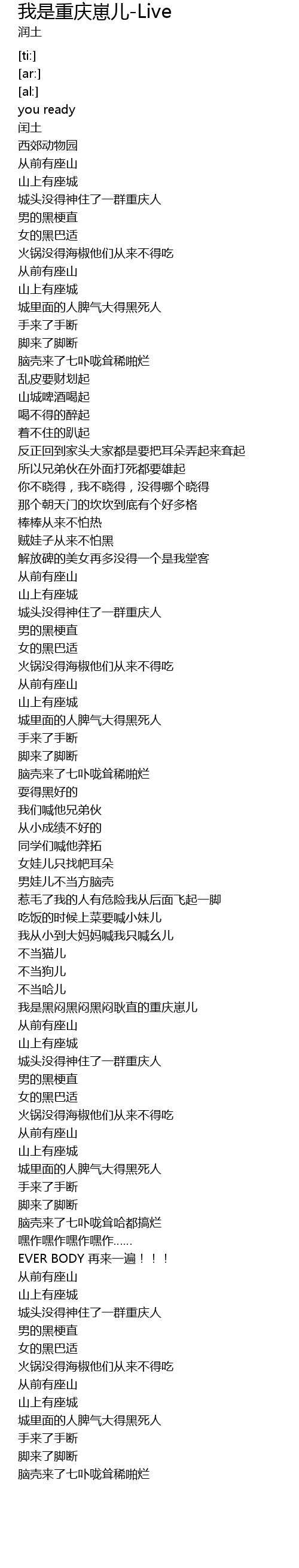 | [01:34.11] | 城头没得神住了一群重庆人 |