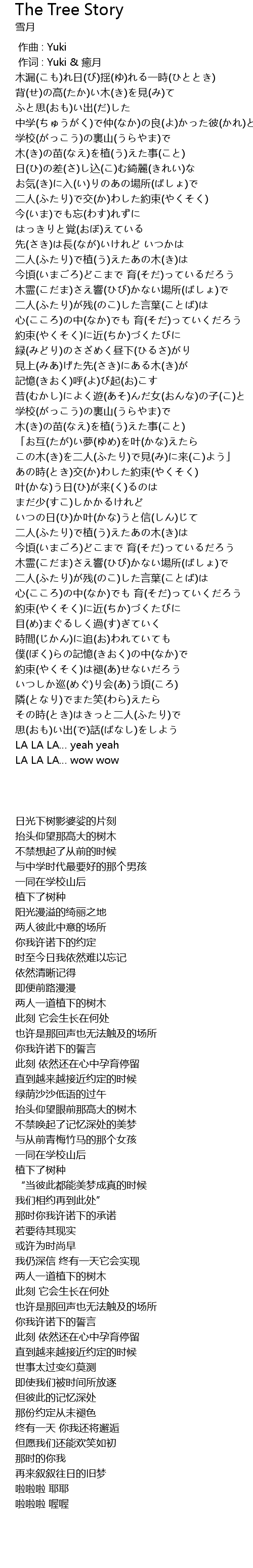 | [04:11.510] | この木(き)を二人(ふたり)で見(み)に来(こ)よう」 |