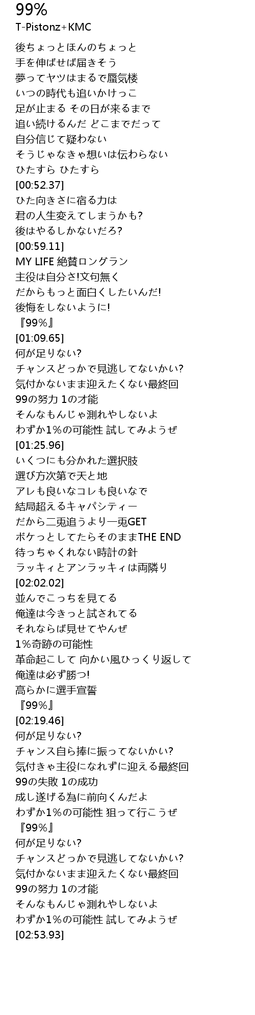 | [02:49.80] | わずか1%の可能性 試してみようぜ |
