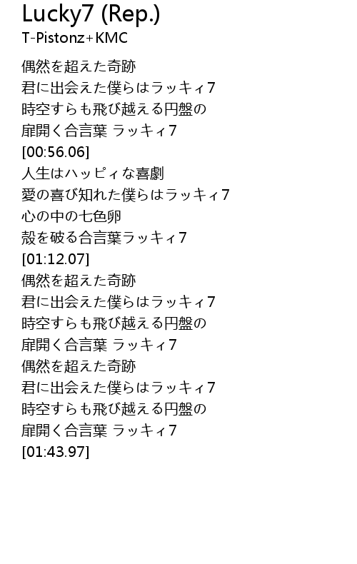 | [01:16.13] | 君に出会えた僕らはラッキィ7 |