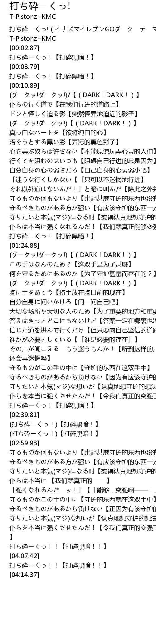 | [04:06.39] | 打ち砕ーくっ!!【打碎黑暗!!】 |