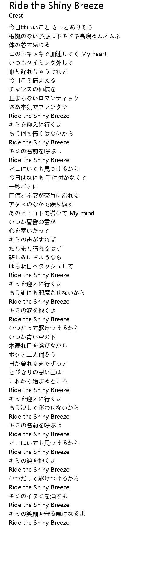 Ride the Shiny Breeze Lyrics