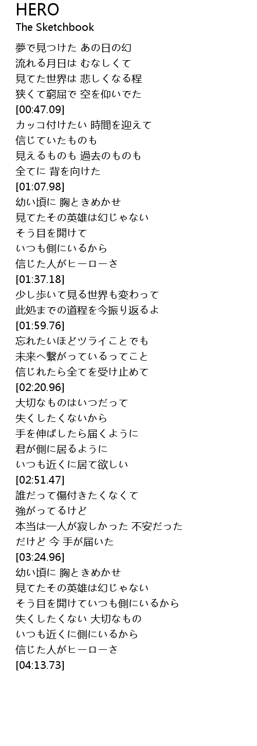 | [01:14.34] | 見てたその英雄は幻じゃない |