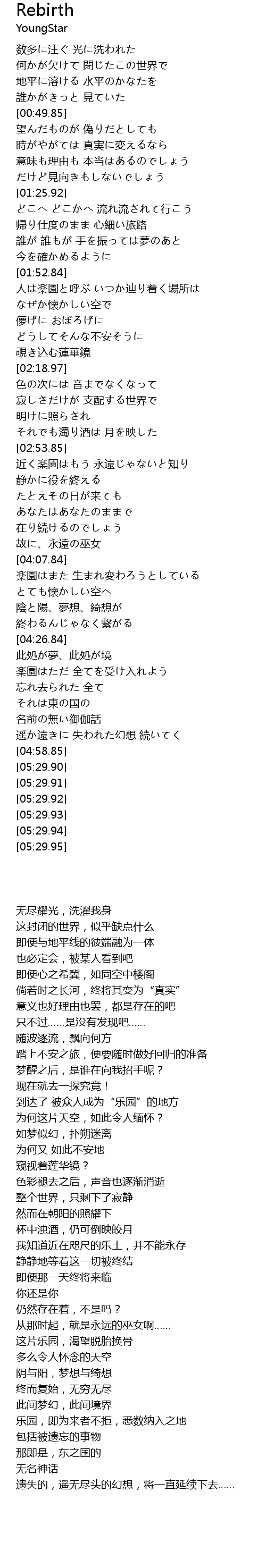 | [04:07.85] | 楽園はまた 生まれ変わろうとしている |