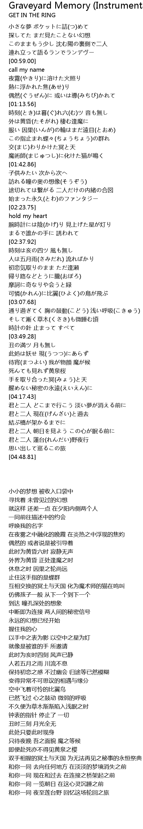 | [04:39.47] | 君と二人 蓮台(れんだい)野夜行 思い出して巡るこの旅 |